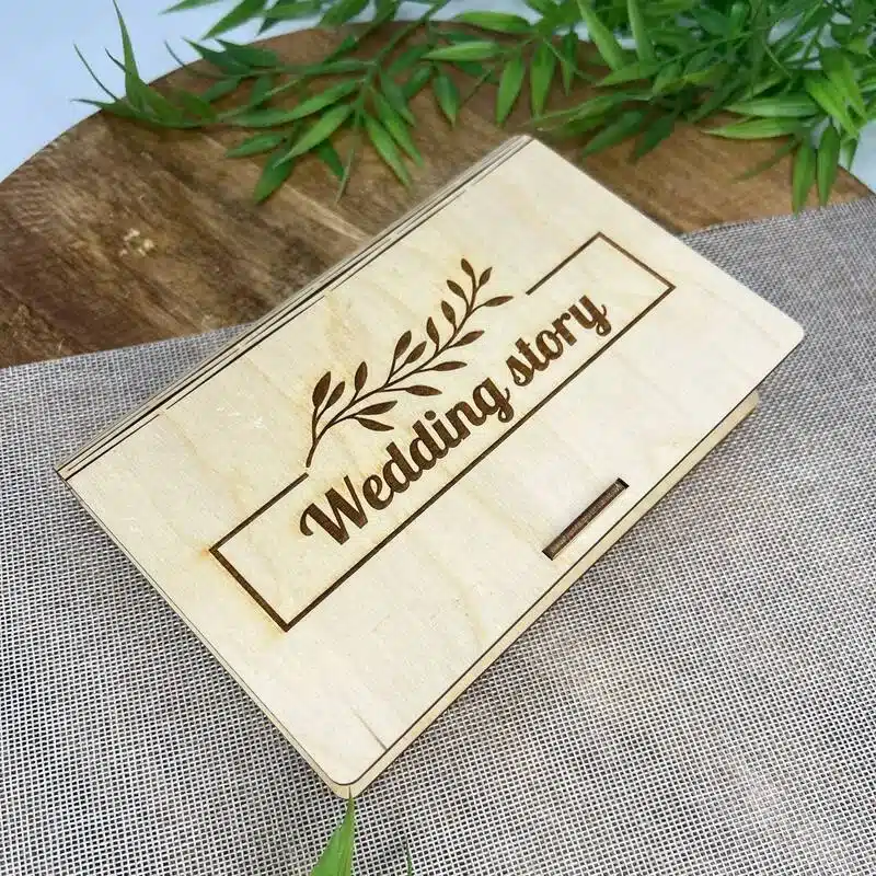 O cutie elegantă pentru păstrarea fotografiilor și a materialelor digitale de la nuntă. Personalizarea inclusă o transformă într-un cadou unic și memorabil.