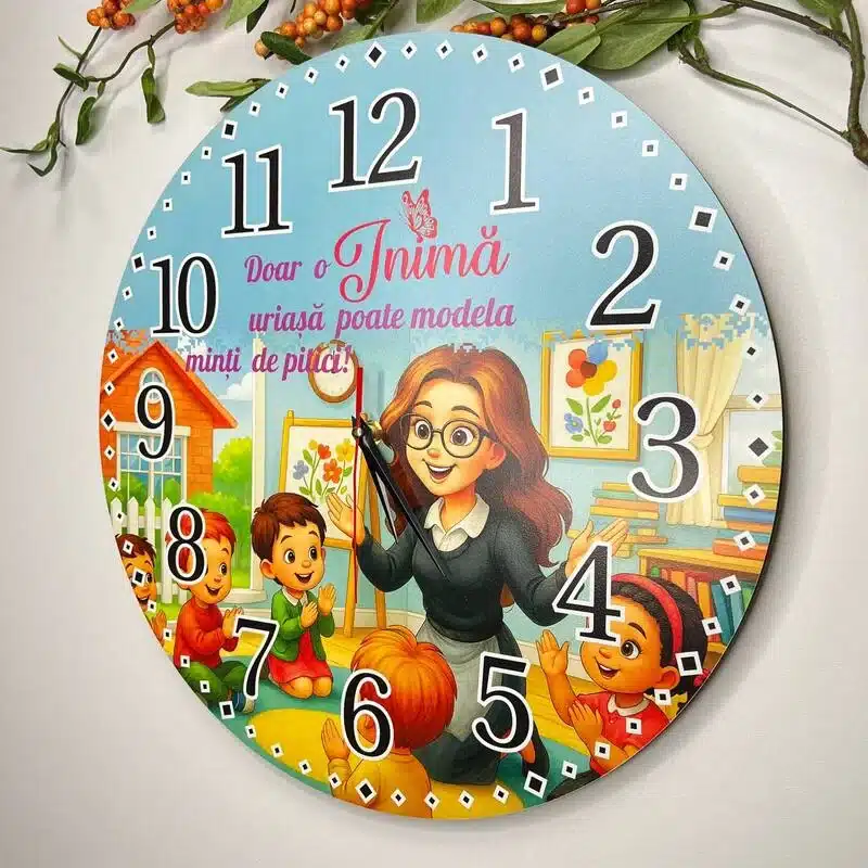 Ceasul cu tipar, având un diametru de 40 cm, realizat din MDF alb și imprimat cu UV printer, este o alegere excelentă pentru a adăuga o notă de personalizare și stil în spațiul tău, cu un design unic și o calitate superioară a imprimării.