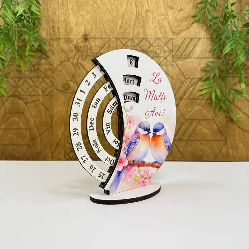 Calendarul veșnic „La Mulți Ani” este un obiect decorativ și practic, creat pentru a fi folosit pe tot parcursul anului. Designul său aniversar îl face potrivit atât pentru birou, cât și pentru spațiul de acasă, fiind o alegere inspirată pentru momente speciale.