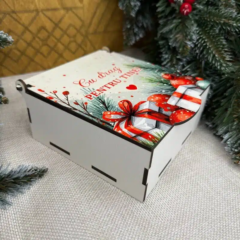 O cutiuță elegantă și practică, ideală pentru ambalarea darurilor mici. Designul modern și aspectul curat o transformă într-o soluție perfectă pentru cadouri personalizate.