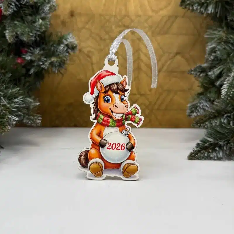 O jucărie decorativă pentru brad realizată din HMDF alb, personalizată cu UV tipar de înaltă calitate. Ideală pentru a adăuga un plus de eleganță și originalitate bradului de Crăciun sau pentru a fi oferită ca cadou personalizat.