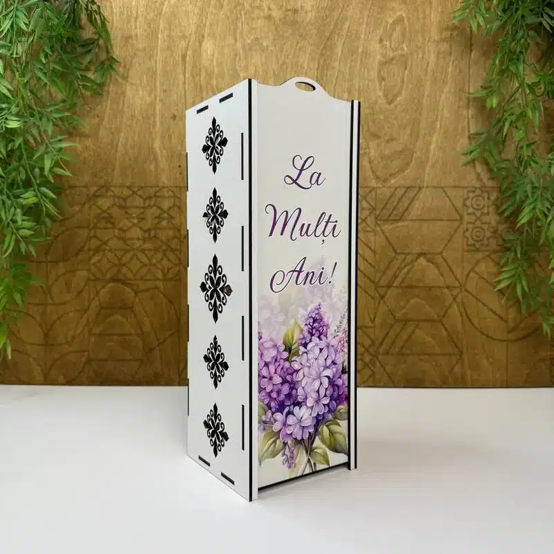 Ladă din HMDF alb "La Mulți Ani" - Etnik