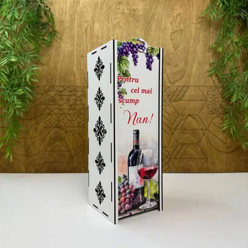 Ladă decorativă realizată din HMDF alb, ideală pentru prezentarea cadourilor și realizarea seturilor festive. Designul elegant, completat de tipar decorativ, oferă un aspect curat și versatil, potrivit pentru diverse ocazii speciale.