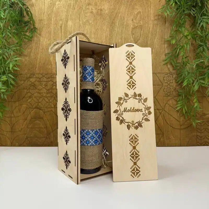 Ladă decorativă realizată din placaj, ideală pentru prezentarea cadourilor și realizarea seturilor festive. Designul elegant, completat de tipar decorativ, oferă un aspect curat și versatil, potrivit pentru diverse ocazii speciale.