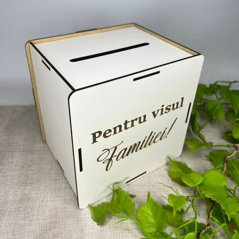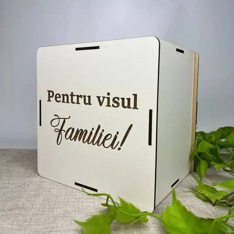 Pușculița „Pentru Visul Familiei” este o alegere minunată pentru a combina economisirea cu un mesaj emoțional și motivant.
