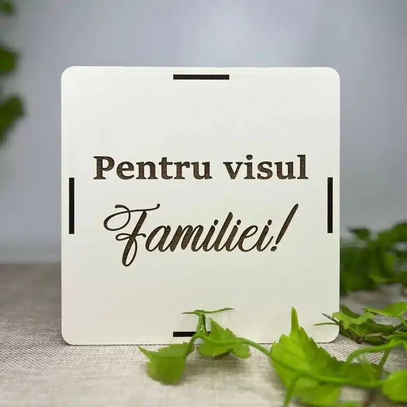 - Design: Formă modernă și atrăgătoare, cu mesajul „Pentru Visul Familiei” gravat sau imprimat.