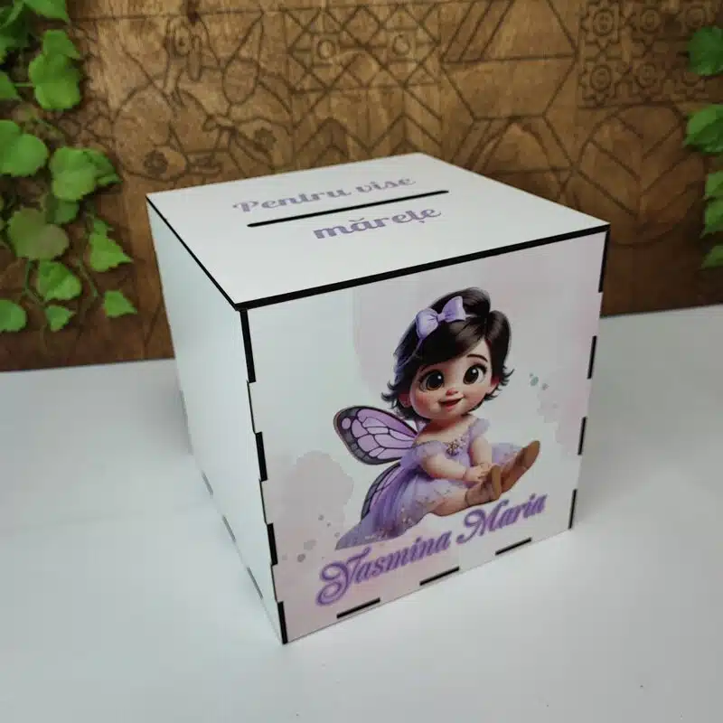 Pușculița personalizată “Pentru vise mărețe” – un accesoriu elegant și inspirațional, special conceput pentru a vă ajuta să economisiți pentru visele și obiectivele dumneavoastră. Confecționată din MDF alb de calitate superioară, această pușculiță motivațională reprezintă atât un instrument practic de economisire, cât și un memento zilnic al aspirațiilor personale.