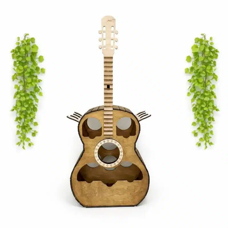 Mini-bar decorativ în formă de chitară, ideal pentru pasionații de muzică și pentru un colț de relaxare cu personalitate. Un element original care atrage privirile și completează perfect orice interior – fie acasă, fie într-un spațiu tematic.
