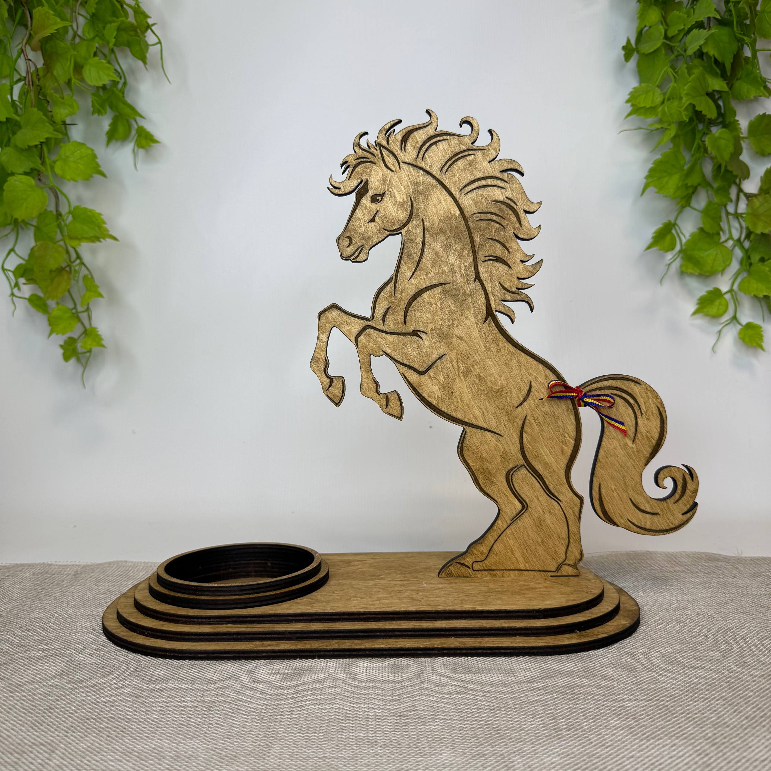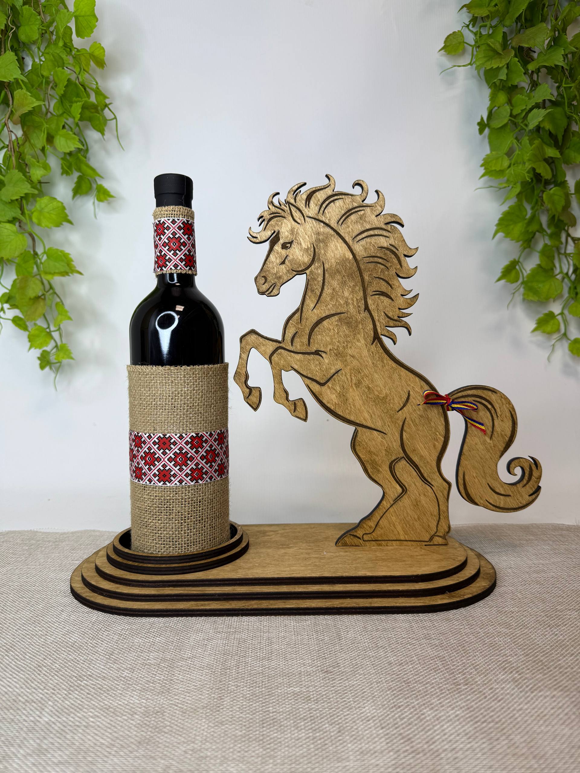 Suportul pentru sticlă de vin „Anul Calului” este un accesoriu elegant și practic, creat pentru a expune și servi vinul cu stil. Designul cu tematică tradițională adaugă un plus de autenticitate și rafinament în orice ocazie sau cadou.