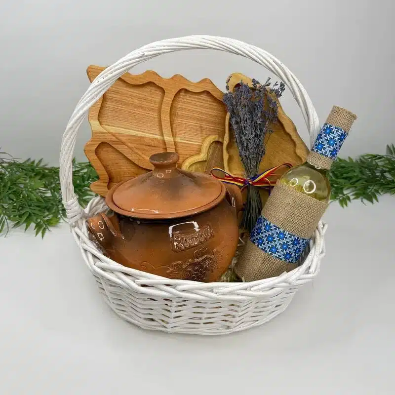 - Sticlă de vin – pentru a completa setul și a aduce o notă de sărbătoare.