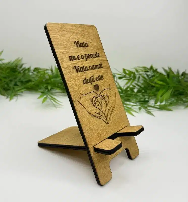 Suport practic și elegant pentru telefon, ideal pentru birou sau acasă. Personalizarea inclusă îl transformă într-un cadou original și util pentru orice ocazie.