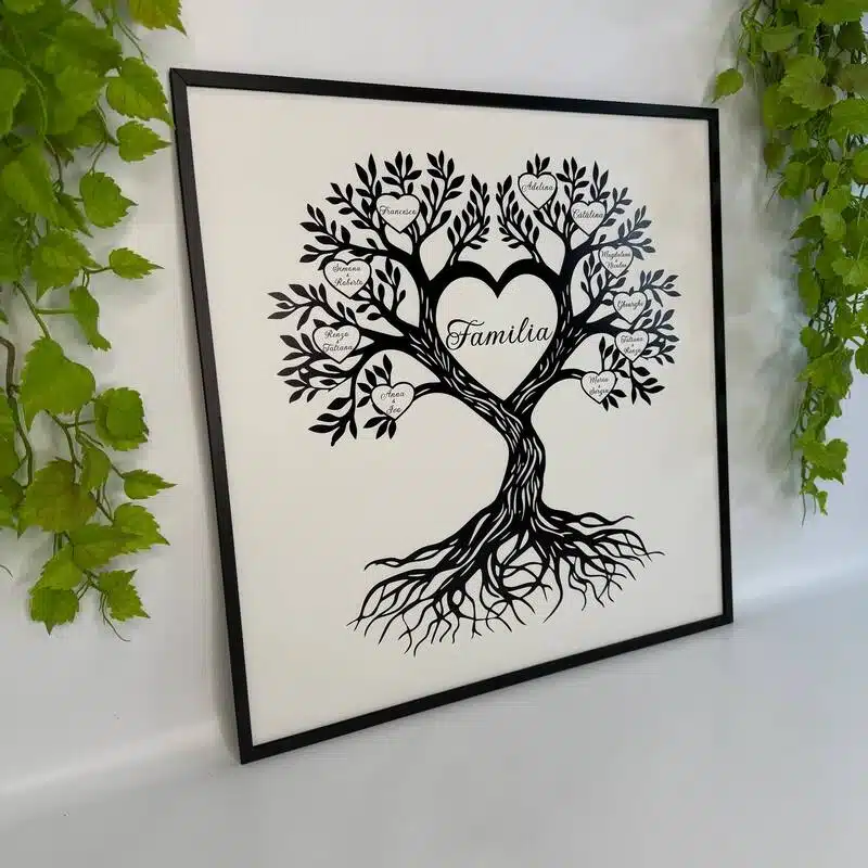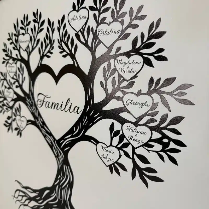 Un panou decorativ elegant, perfect pentru a expune într-un mod artistic istoria familiei. Designul tipărit oferă detalii clare și un aspect modern, ideal pentru orice locuință.