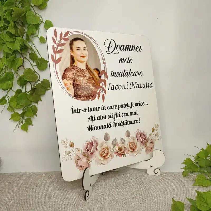 Un panou decorativ și emoțional, special conceput pentru a exprima recunoștința și afecțiunea față de profesoare. Cu un mesaj cald și un design modern, acest panou este un cadou minunat pentru a marca ocazii speciale, cum ar fi Ziua Învățătorului sau sfârșitul anului școlar.