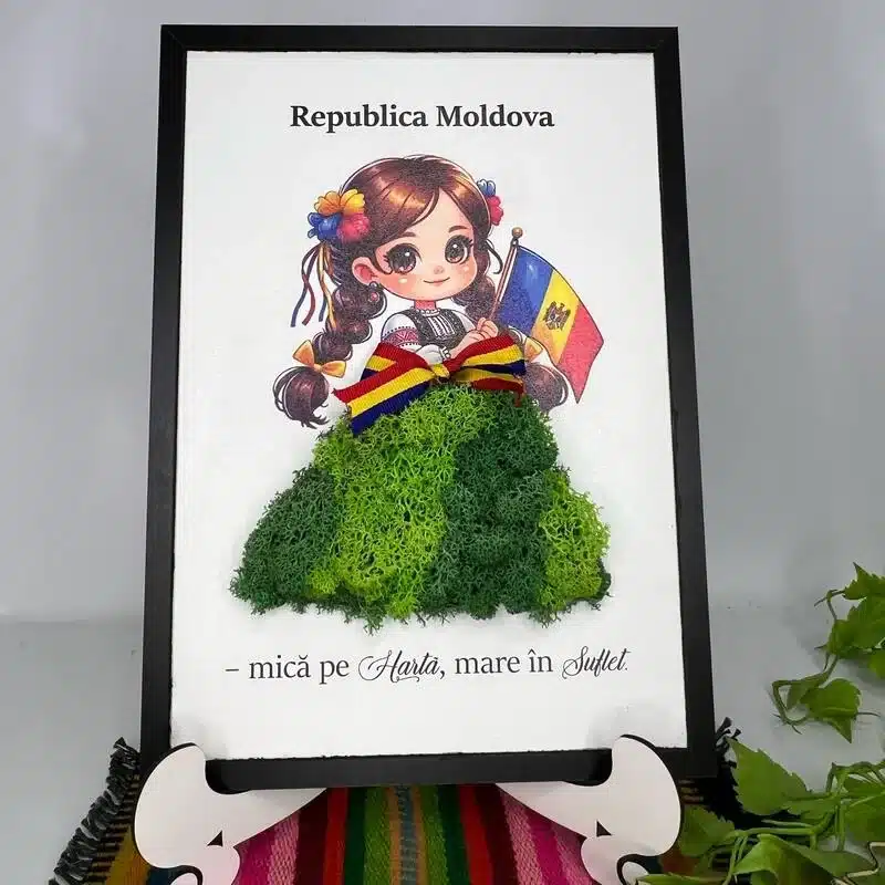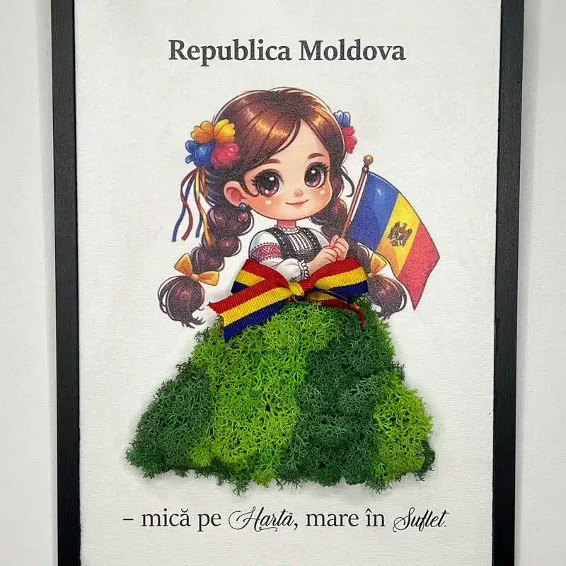 Un panou decorativ autentic, care celebrează frumusețea și identitatea culturală a Republicii Moldova. Realizat din lichieni naturali pe o bază de MDF alb, acest panou aduce un strop de natură și mândrie națională în orice spațiu.