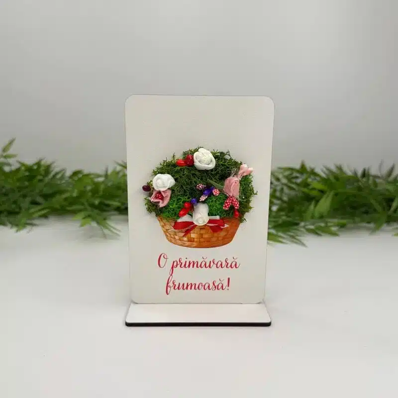 Un trofeu decorativ delicat, creat pentru a aduce zâmbete și culoare în sezonul primăverii. Realizat din HMDf alb, cu tipar de calitate și decorat cu lichieni stabilizați, este un cadou simbolic și elegant.
