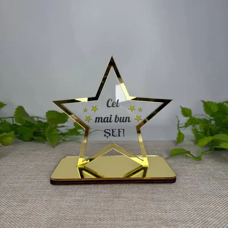 Trofeul „Cel mai bun Șef” este un obiect elegant și simbolic, creat pentru a celebra leadership-ul și performanța managerială. Designul modern și materialul de calitate îl fac un cadou corporate deosebit și memorabil.